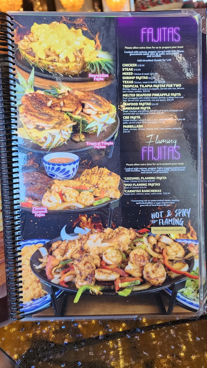 The menu is a feast for the senses, featuring standout dishes such as Shrimp Fajitas Flamed and the rich, savory Cozumel Shrimp sautéed in creamy sauce. For a unique twist, try the Flaming Cheetos Elote—a fiery take on a classic corn dish, or indulge in the spicy chicken burritos that customers rave about for their burst of flavors.